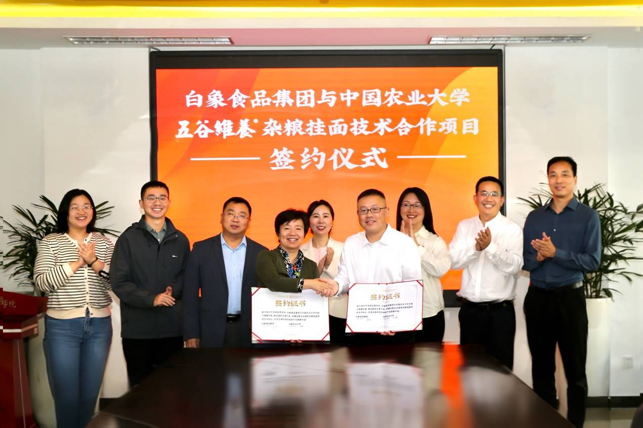 在产品研发的征途上,白象五谷维养迈出了坚实的一步,与中国农业大学正式签订了合作协议。这一合作旨在借助中国农业大学深厚的专业力量,对杂粮面条的口感优化与营养提升展开全面而深入的研究。