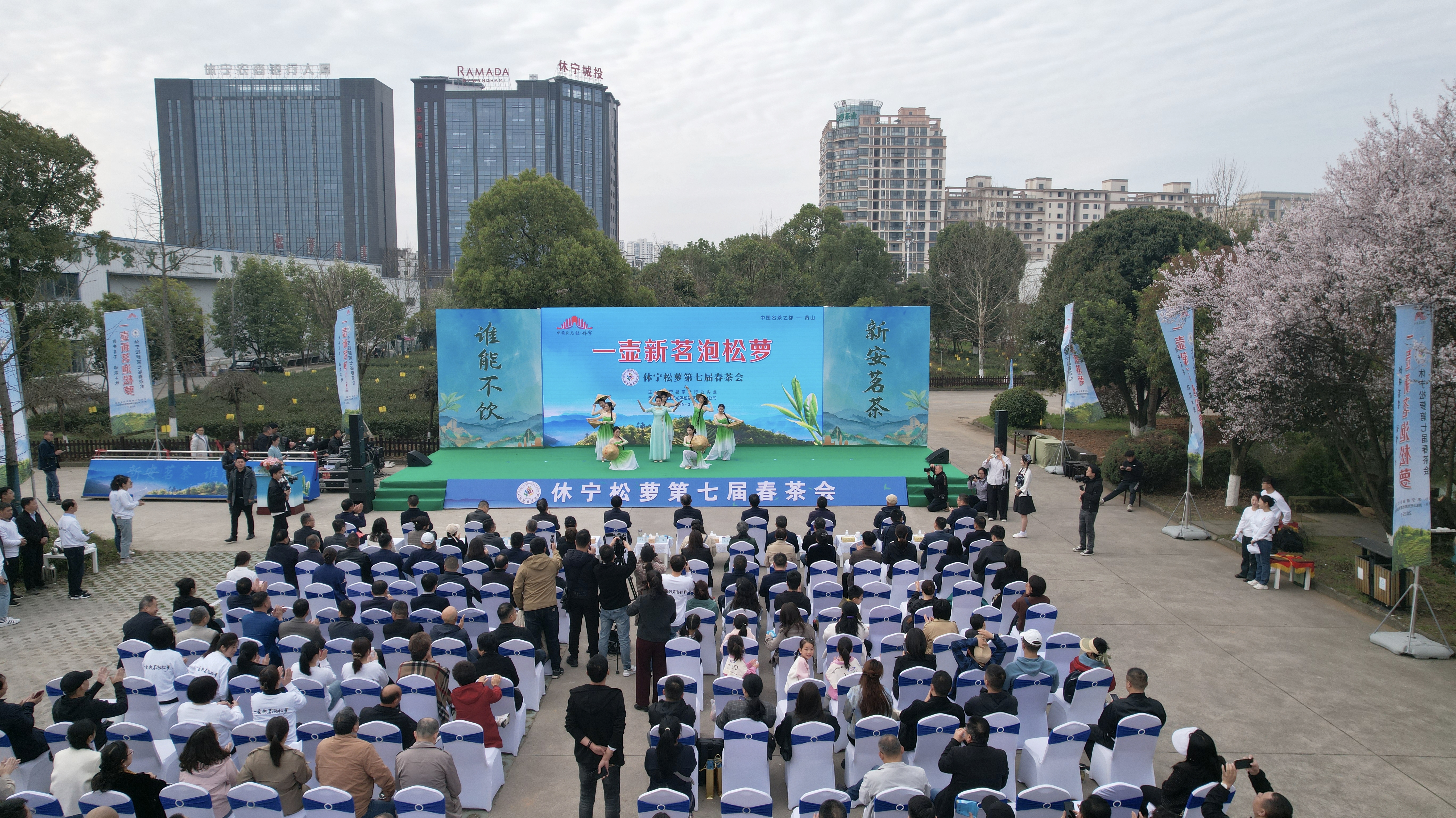 最爱晚凉佳客至,一壶新茗泡松萝。3月23日上午,休宁松萝第七届春茶会正式启动。“正二月里来是初春,奴施家肥茶园中……”伴随着一段优美的“山间再含翠 佳茗遇佳人”开场歌舞《摘茶歌》,拉开了春茶会序幕。