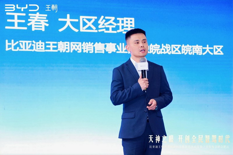 比亚迪王朝网皖南大区经理王春在致辞中介绍道:“智能化是汽车产业的未来,比亚迪让高阶智驾不再是少数人的专属,旗下王朝网全系标配天神之眼高阶智驾系统,覆盖了7万至30万元的市场,重塑用户出行体验,让更多消费者以更亲民的价格享受到高端智能的驾驶乐趣。”