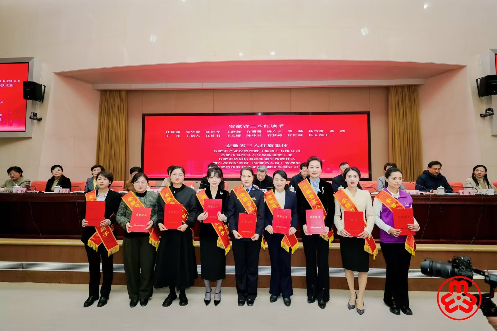 大会还通报了合肥市受到全国妇联和安徽省妇联表彰的先进典型。其中,合肥市肥西县公安局政工监督室二级警长陈霜荣获全国三八红旗手称号;安徽中安创谷科技园有限公司双创服务中心荣获全国三八红旗集体称号;长鑫科技集团股份有限公司扩散设备工程部、合肥市庐江县汤池镇百花村村民委员会荣获全国巾帼文明岗称号。深空探测实验室(天都实验室)系统研究院月球探测研究室主任、研究员任筱强等17人荣获安徽省三八红旗手称号;合肥市包河区万年埠街道党工委等5个单位荣获安徽省三八红旗集体称号。