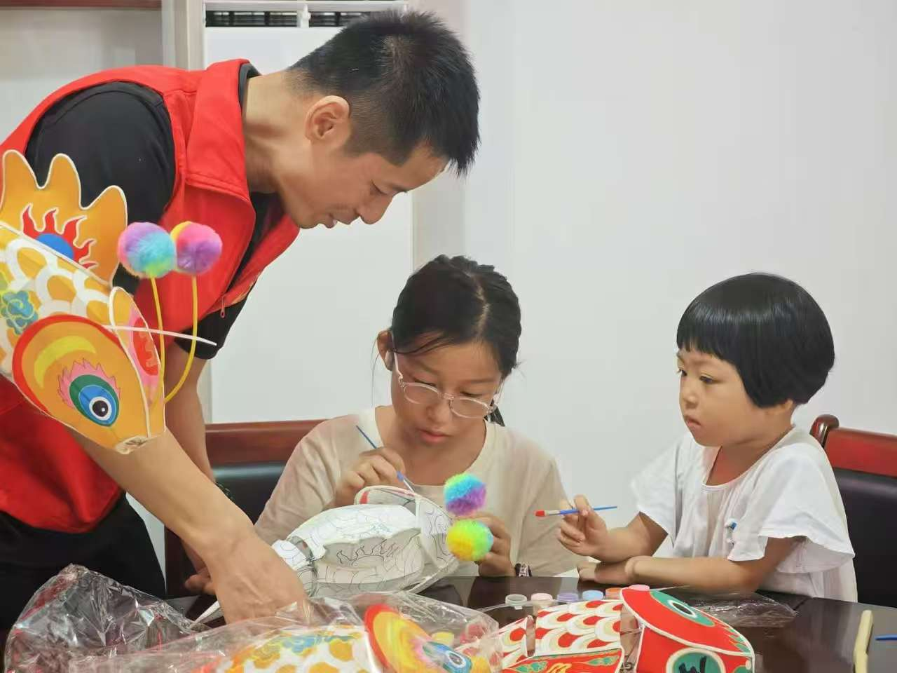 参与活动的亲子家庭默契协作,家长向孩子讲述着鱼灯故事,孩子们手握画笔,在宣纸灯面上小心翼翼地勾勒,眼中闪烁着对传统技艺的好奇与惊叹,亲子间的对话温暖而真挚,共同制作出一盏盏独一无二的鱼灯。