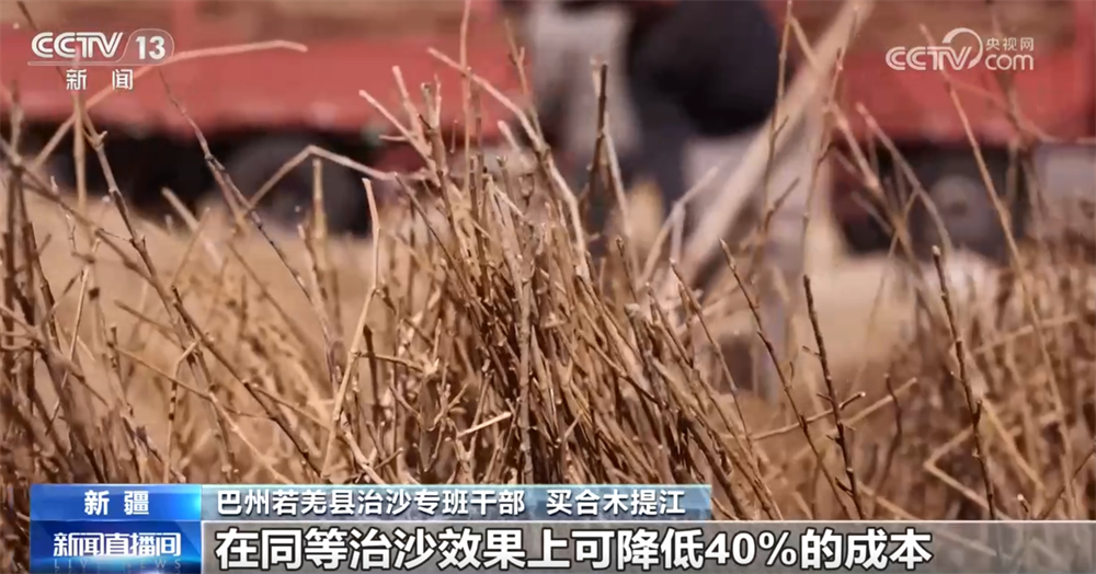巴州若羌县治沙专班干部买合木提江称:“首次采用了‘间隔治沙’这项创新治理模式,治理面积7.8万亩,在同等治沙效果上可降低40%的成本。”