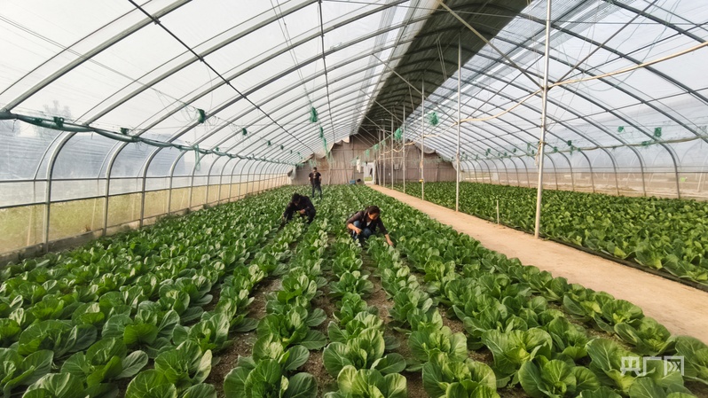 李王庄村蔬菜大棚里的甘蓝长势喜人(央广网记者 郝振青 摄)