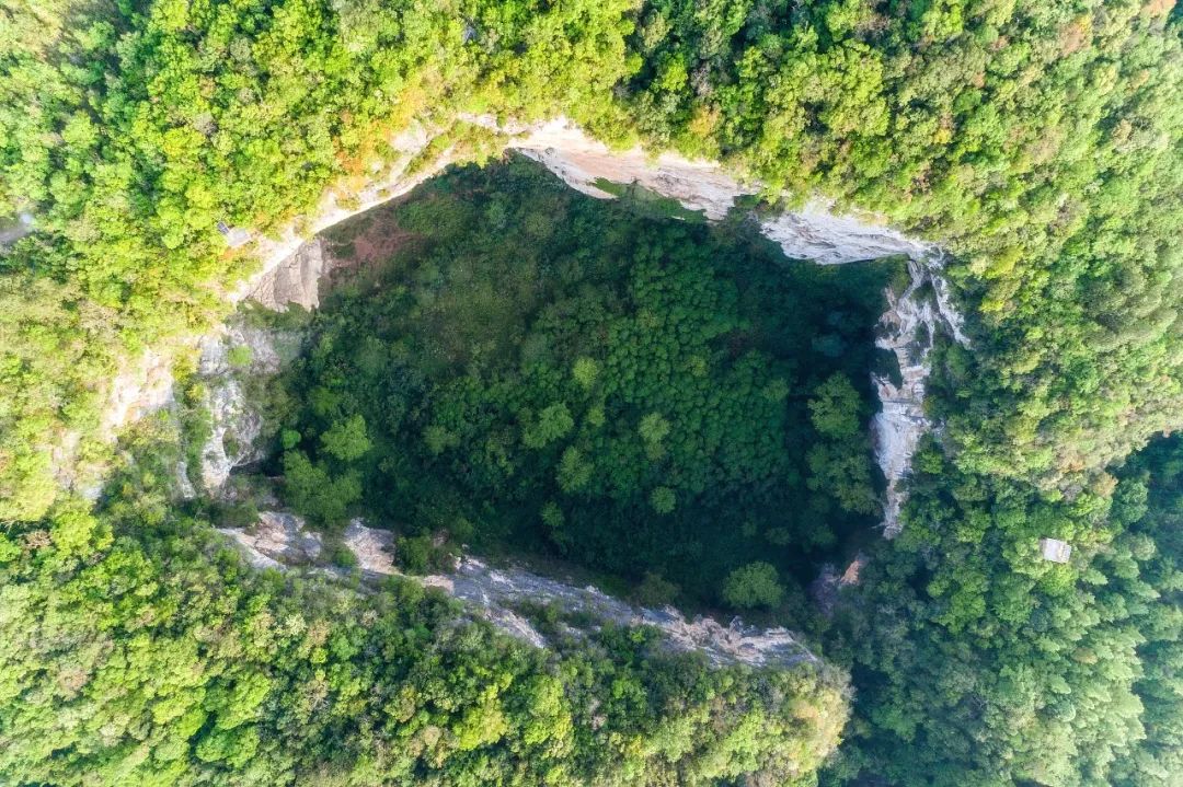乐业天坑 世界最大天坑群 藏着丰富、幽深的地下秘境 四面绝壁,如斧劈刀削 内有暗河,似别有洞天