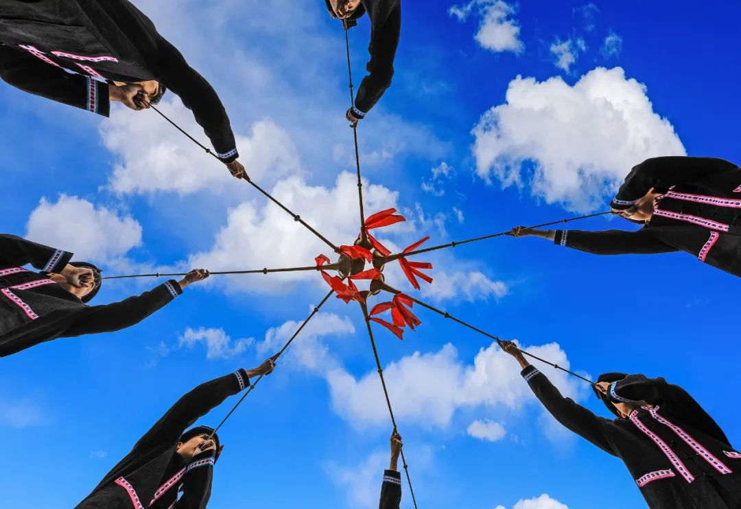 抢花炮,是“勇敢者的运动” 也是力量与智慧的较量 芦笙舞又名“踩芦笙”“踩歌塘” 男子吹笙在前,山风应和 女子随乐起舞,银佩叮当 一步踏碎云雾,一舞惊醒山河