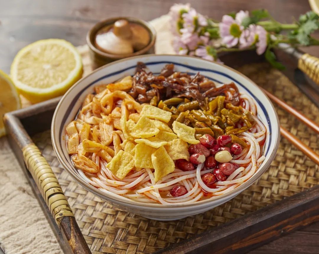 在广西人的食谱中 “臭”名远扬的螺蛳粉只是基础操作 来到这,就来到了“嗦粉天堂” 柳州螺蛳粉、南宁老友粉、桂林米粉 …… 让你“粉”上广西很简单 五色糯米饭、荔浦芋扣肉 阳朔啤酒鱼、高峰柠檬鸭…… 每个地方都有着自己的迎客盛宴 都有舌尖上的独特风味
