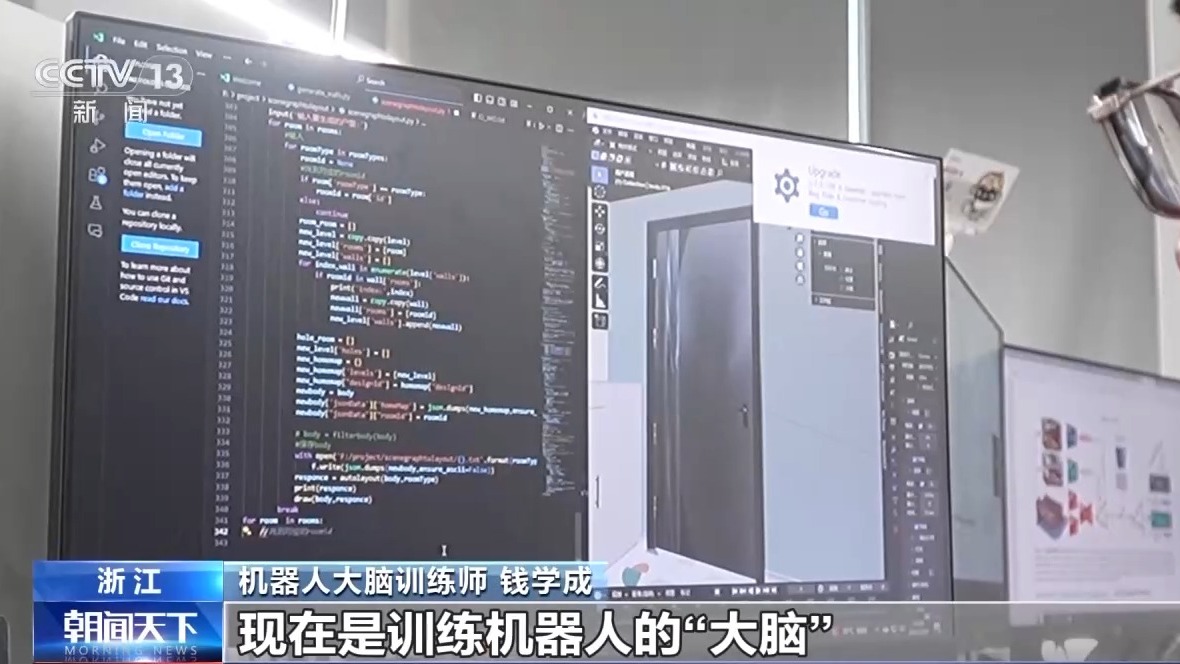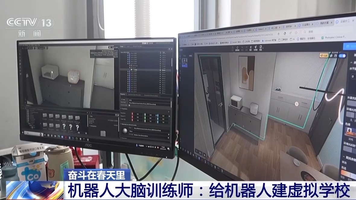 “如何抓取透明玻璃杯?”“用多大力气可以打开冰箱门?”钱学成告诉记者,这些人类的操作,对机器人来说,却是一件难事,不仅要有灵活的肢体,还需要在物体识别、力度把控等认知层面反复训练,才能在现实生活中完成任务。而机器人大脑训练师的工作就是负责打造各种训练场景,钱学成把自己的工作比喻成给机器人建学校。