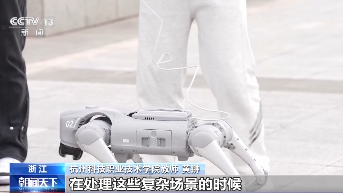 杭州科技职业技术学院教师 黄翀:基于机器狗的能力,要开发一款在校园巡逻的系统。机器狗能够提高学生的兴趣。学生使用到最前沿的人工智能技术,在处理这些复杂场景的时候,也能够提高自己的能力。