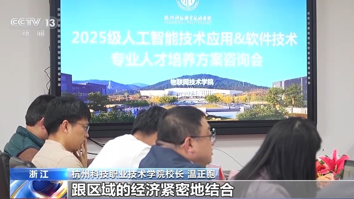 杭州科技职业技术学院校长 温正胞:我们新专业跟区域的经济紧密地结合,回应经济社会发展。人工智能技术的发展迭代很快,希望学生们能够具备这样一种意识,能够胜任未来岗位的变化。