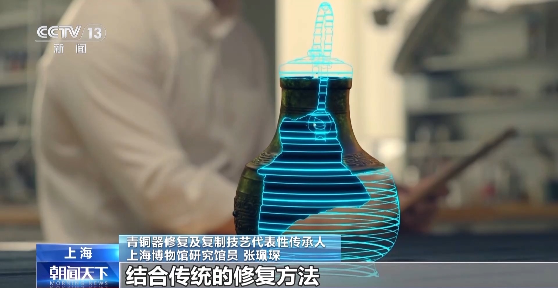 上海博物馆副研究馆员张茗:3D等技术对文物是有最小的一个干预,而且对修复中的补配,起到了非常精确的模拟。