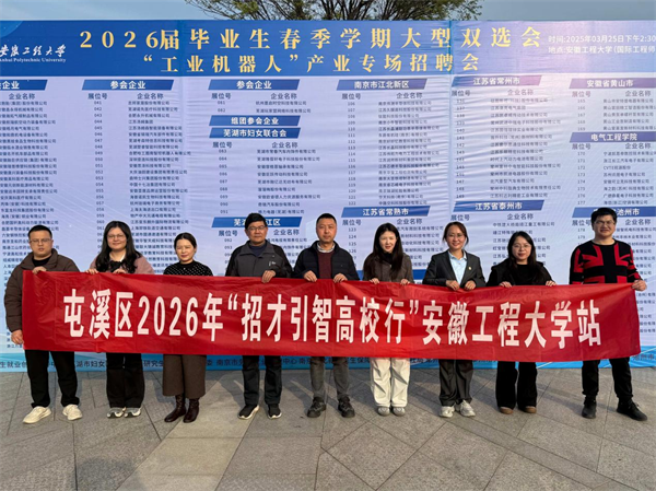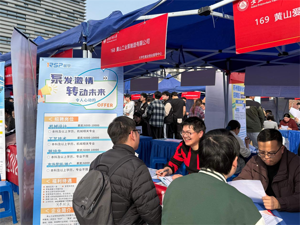 为深入落实人才强区战略,聚焦重点产业人才需求,助力高校毕业生高质量充分就业,近日,黄山市屯溪区人社局组织黄山工业泵、安特普电器有限公司等多家重点企业,前往安徽工程大学开展专场校园招聘活动,搭建校企人才精准对接桥梁,为区域产业发展汇聚青年人才力量。