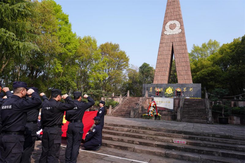 烈士陵园内庄严肃穆,松柏苍翠、静穆无声,烈士纪念碑巍峨矗立,镌刻着革命先烈为国家和人民抛头颅、洒热血的峥嵘岁月,承载着中华民族不屈不挠的精神脊梁。活动现场,全体民辅警整齐列队,神情凝重,肃立在烈士纪念碑前,向为民族独立、人民解放和国家富强、人民幸福献出宝贵生命的革命先烈默哀致敬,表达对英烈的深切缅怀和崇高敬意。