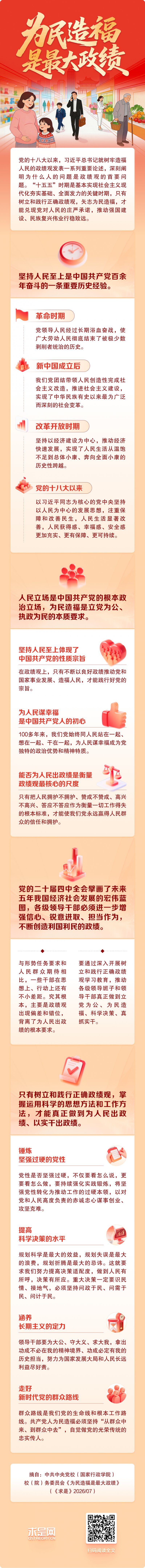 2026年第7期《求是》杂志刊发了中共中央党校(国家行政学院)校(院)务委员会的文章,对为民造福是最大政绩作出阐释,文章重点如下: