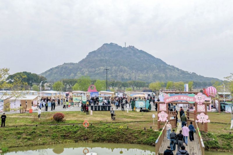图为在阳山镇桃心小岛举行的春日市集场景。新华社发