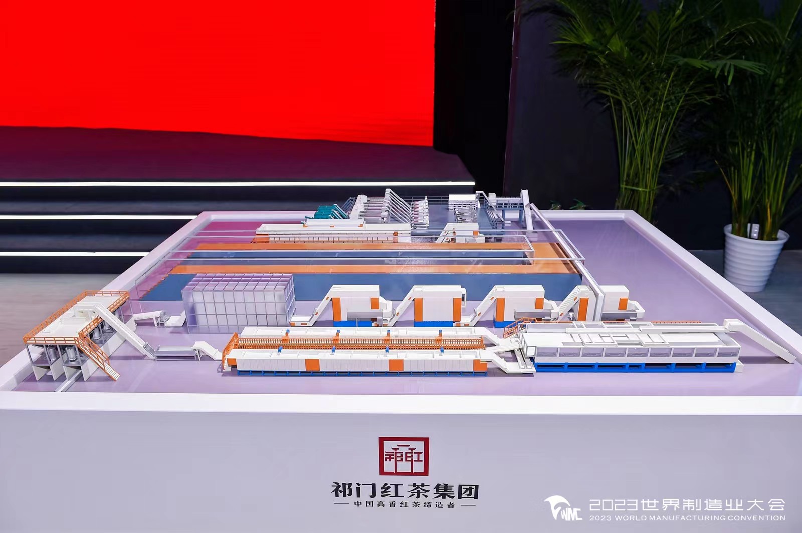 智造世界,创造美好。2023世界制造业大会于2023年9月20日在安徽合肥开幕。乘此东风,9月24日,祁门县“皖美首台套”亮相安徽省合肥滨湖国际会展中心,祁门红茶集团研制的首条祁门红茶初、精制一体化、5G 智能化生产线正式发布。