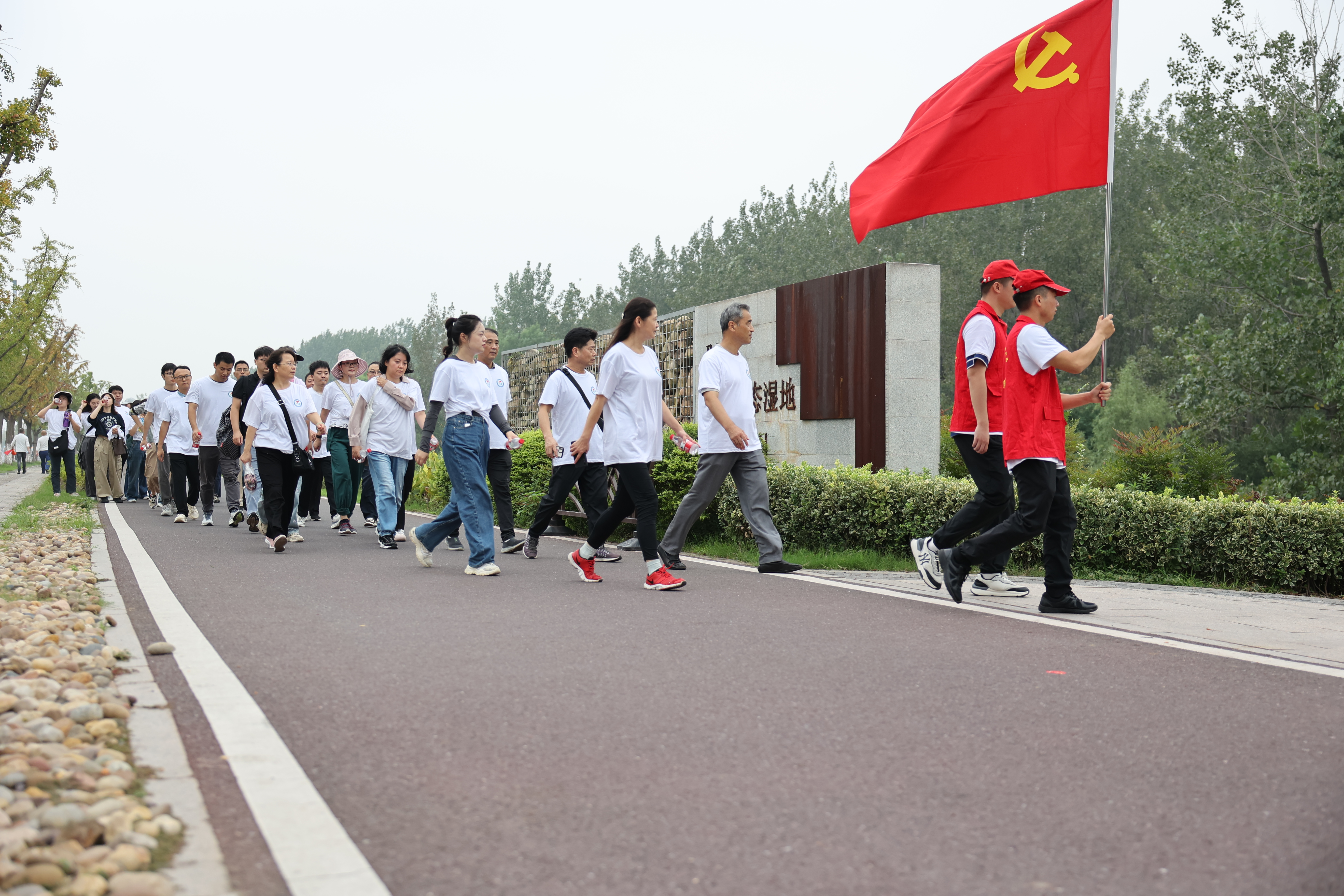 活动现场安排了三个环节。一次林长制成果展,通过宣讲林长制改革发展历程、播放林长制宣传片、悬挂林长制横幅标语、发放林业法规条例宣传手册,进一步提高林业系统人员及广大市民对林长制的认识和关注。一次“多彩自然、走入森林”健步走活动,近百名党员、团员、市民穿着统一服装沿着5公里规定路线,走进郁郁葱葱的杨树林,沿路打卡拍照、学习林业知识,与大自然进行一次亲密接触。一次青年读书分享活动,团员青年们在芦苇江湾巨石旁,围绕《林长治林》《大国重器》等书籍,交流读书心得。