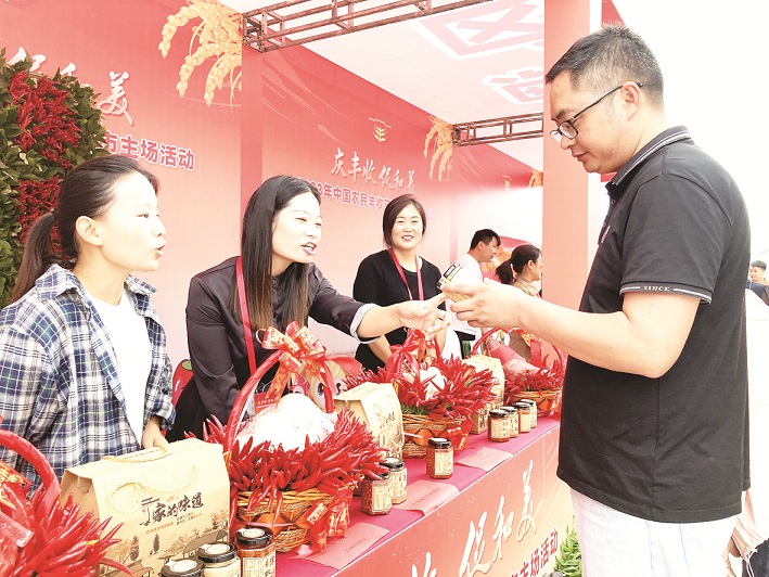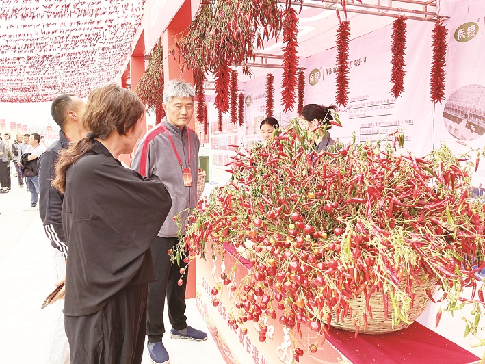 “这是俺们村种的辣椒,你看个个长得都很标准,味道也很好!”“俺村的辣椒品种有好几种,你可以随便挑选。”在庆祝丰收的同时,活动还专门在现场设置了优质农资产品展区。来自芦庙镇雷庄村和王楼村的商户热情地为大家介绍自家产品。种类、形态各异的辣椒吸引不少客户驻足观看。