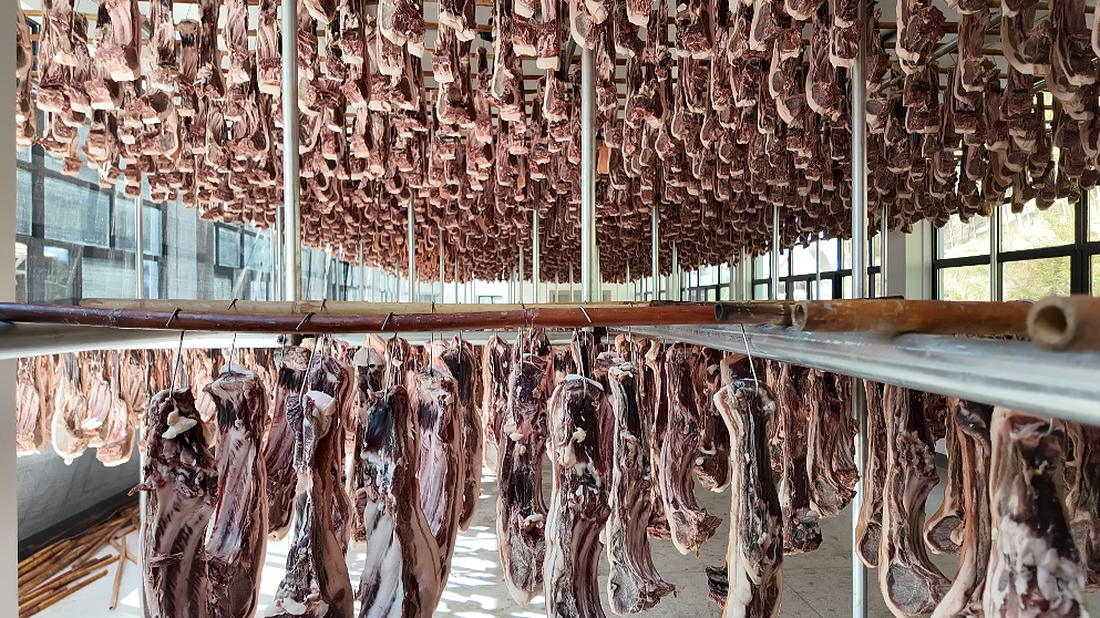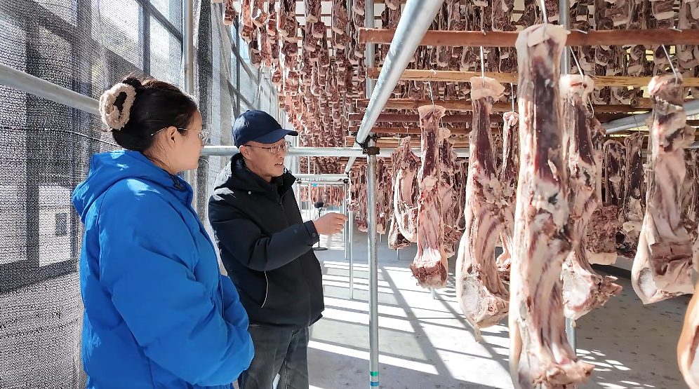“以前我们这边祖祖辈辈风干肉都是自己家里吃,现在也可以卖了。像我们家,今年我家里人帮村里挂肉挂了将近一万斤,给我们的挂晾费是一块钱一斤。” 焦村镇山河村村民 刘伟说道。