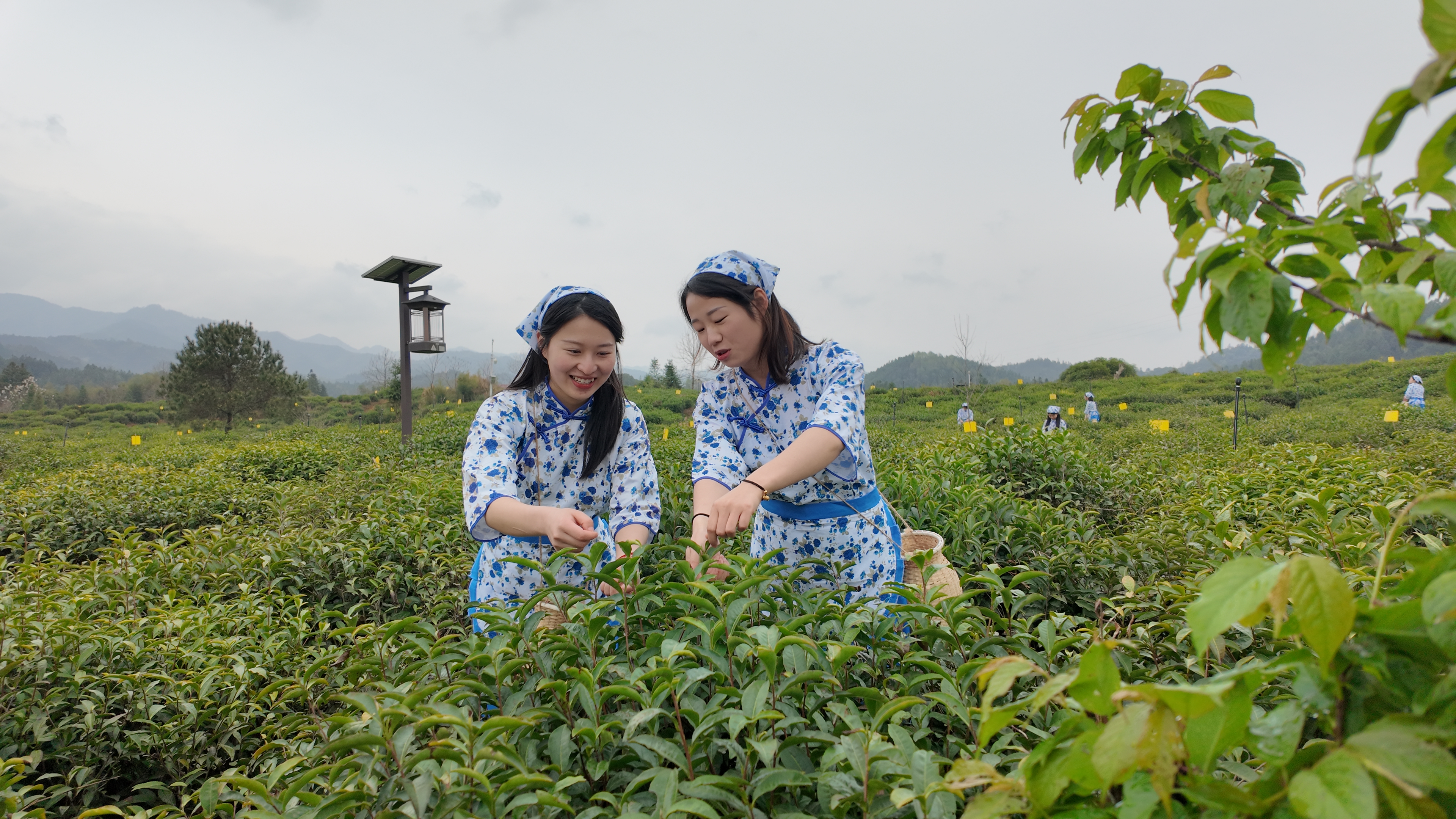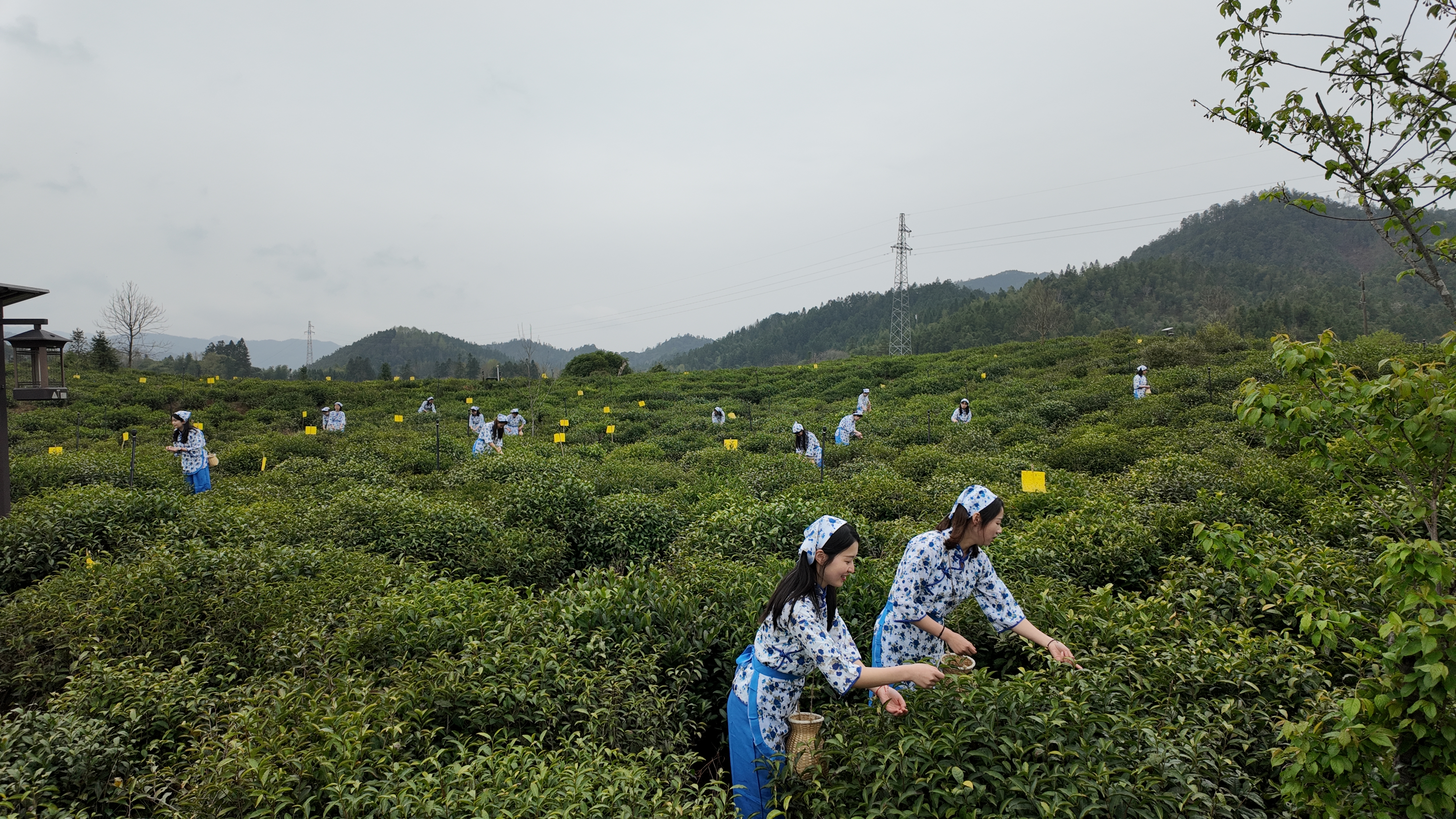 与此同时,茶业改良场的传统市集也是热潮涌动。祁门红茶协会联合17家茶企,展示出各色祁红生活美物,演绎“茶来是好‘事’”的生活哲学。随着开采大锣被敲响,15名采茶姑娘从嘉宾手中接过茶篓,随后前往平里镇生态茶园进行采摘,这也代表着祁门红茶的采摘季正式开启。