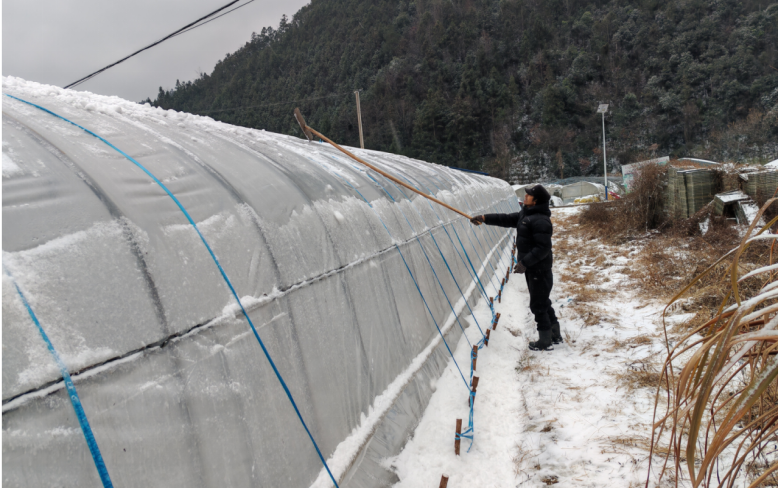 官港育苗基地里,技术员与烟农们手持自制雪耙,合力清扫棚顶薄雪。雪耙划过塑料膜的轻响,与远处山林的鸟鸣交织,奏响一曲冬日里的协作之歌。雪粒簌簌落下,钻进衣领带来凉意,他们却笑着摆摆手:“这点雪不算啥,护住烟苗比啥都重要。”有人蹲下身,用指尖轻轻拂去幼苗叶片上的薄霜,动作温柔得如同呵护珍宝;有人举起手机,想把这风雪中的互助与坚守永远定格。这些画面没有惊心动魄的抢险,却满是动人的烟火气——那是皖南烟叶人刻在骨子里的坚韧,是他们对脚下土地最深沉的热爱,更是对岗位职责的默默践行。