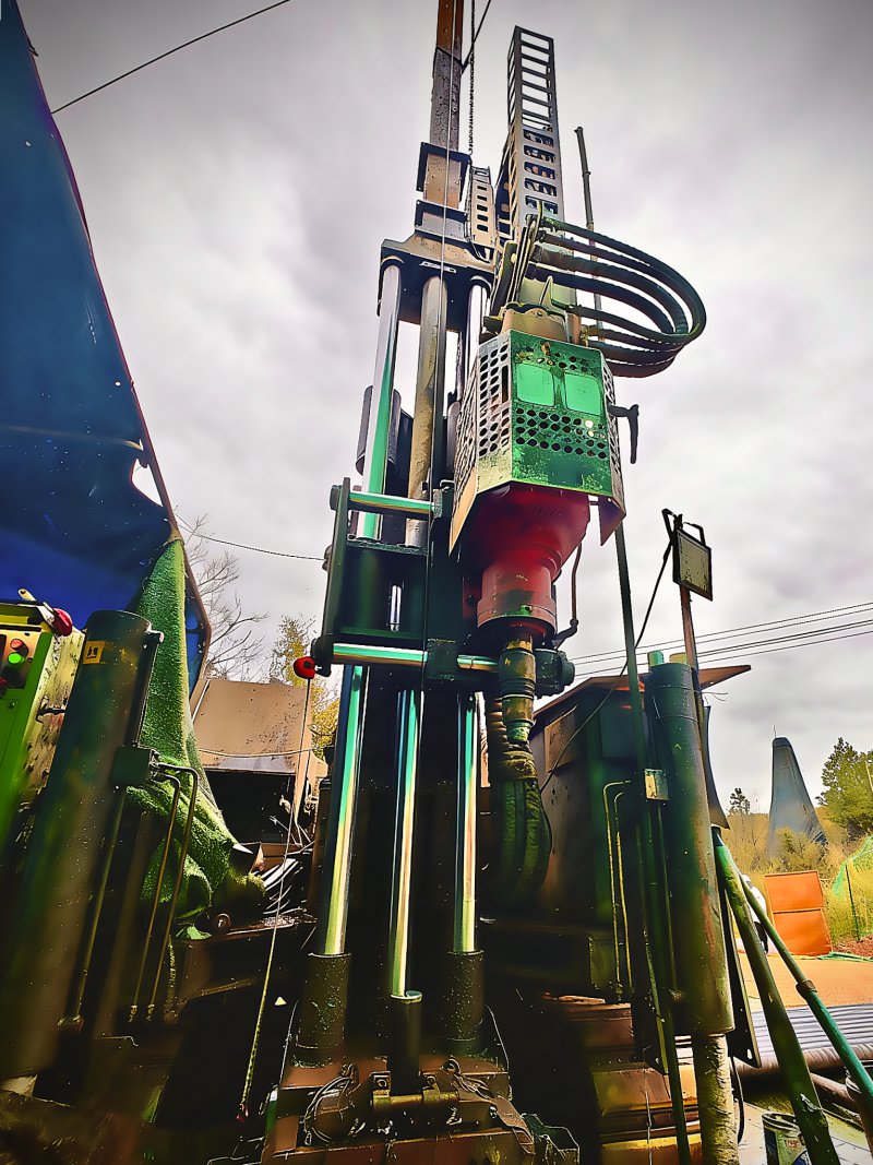 沿着蜿蜒山路上行,越野车嘶吼着颠簸至山腰,这是茶亭铜多金属矿探矿区,远山近坳间,几十台钻机隐在乳白与青翠的混沌里,防雨篷布下,钻塔高耸,飞速旋转的钻机搅动着泥浆池的水花。工人们各司其职,从钻进操作到数据记录,每一个环节都严谨而默契。