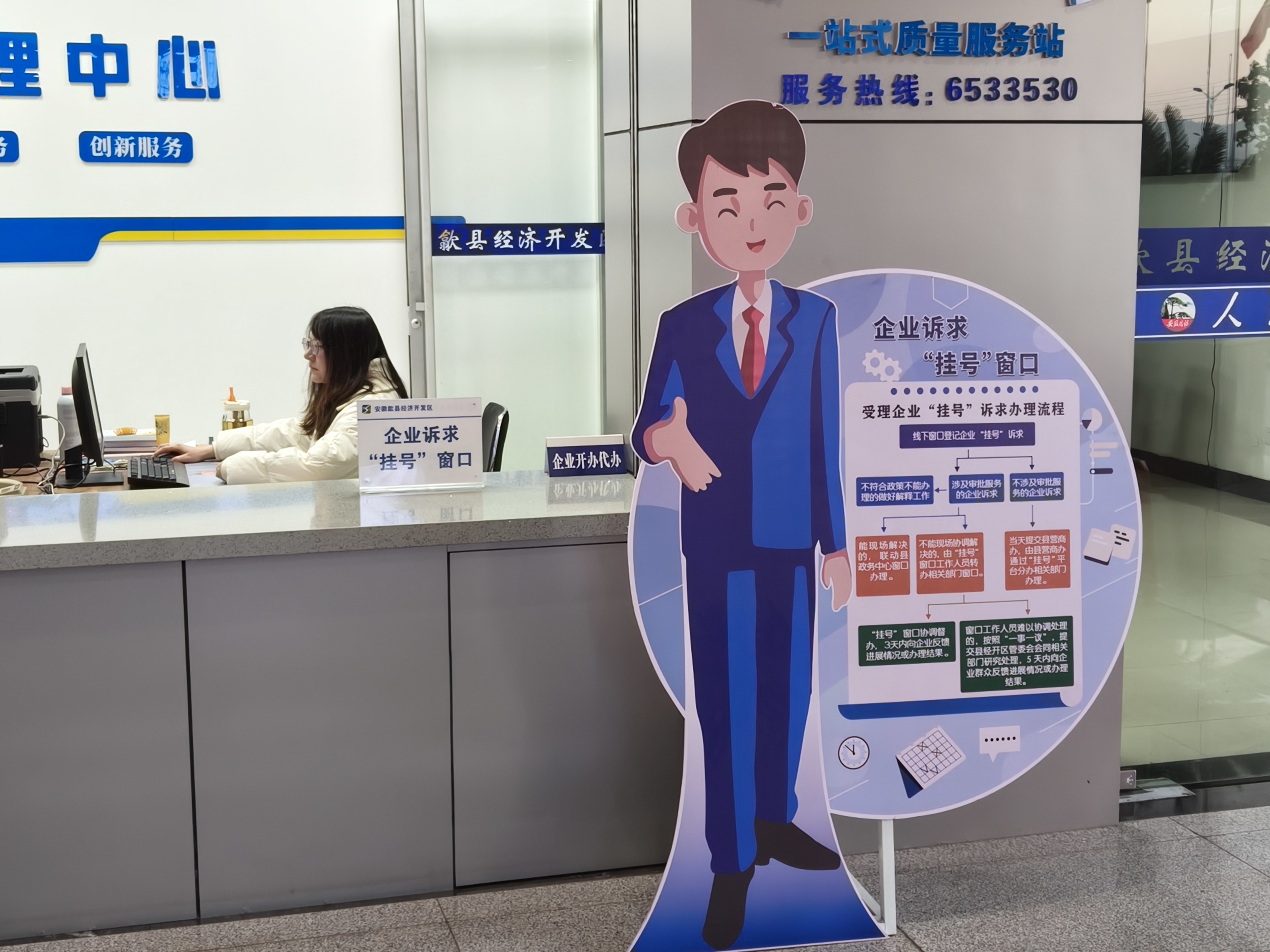 “快”字为先,便捷高效,让企业“最多跑一次”。线上依托省创优营商环境为企服务平台“企业诉求挂号”窗口,线下在县经开区为企服务受理中心设立实体“企业诉求挂号”窗口,确保企业就近“挂号”。建立“前台综合受理、后台分类办理、综合窗口反馈”限时闭环办理机制,实现企业诉求快速响应。1个工作日内完成诉求分办转办,责任部门接诉后1个工作日内主动联系企业,确保可直接办理的1周内办结并及时反馈。2024年,累计收集企业各类诉求224件,其中企业诉求“挂号”窗口线下收集32件,办结率和满意率均为100%。