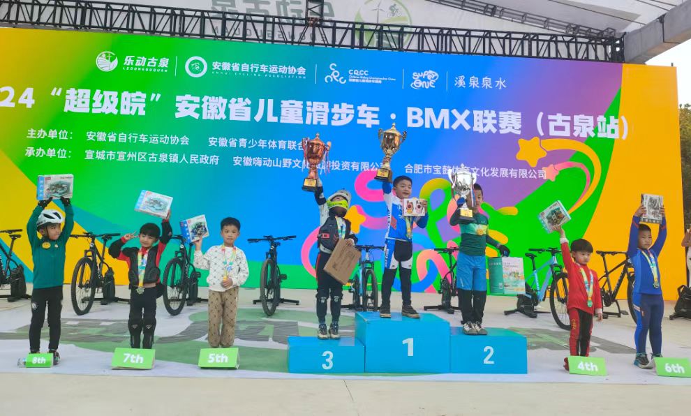 乐动古泉,赛出精彩。据悉,2024“超级皖”安徽省儿童滑步车·BMX联赛(古泉站)共有94名儿童参赛,年龄最小的只有2岁,最大的11岁,分年龄段进行比赛。“热血骑行·古泉站”电竞骑行挑战赛为成人赛,分男子精英组、男子大师组和女子组,参赛选手来自全国各地,共计97名。