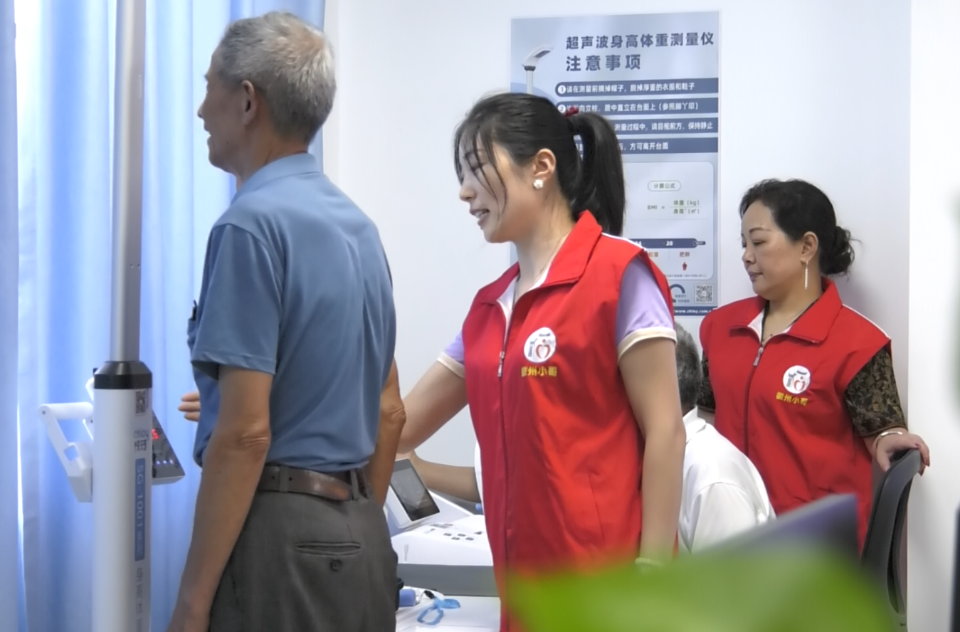 除了就餐服务,服务中心里多功能健康检查工作站的“智慧养老健康服务”功能也让老人们耳目一新,AI门诊机器人、血压血糖仪倍受老人青睐,只需工作人员简单协助,老人们就可以免费进行血压、血糖等健康体检,并得到相应的健康养生提示,充分提升了老年人的晚年生活质量。