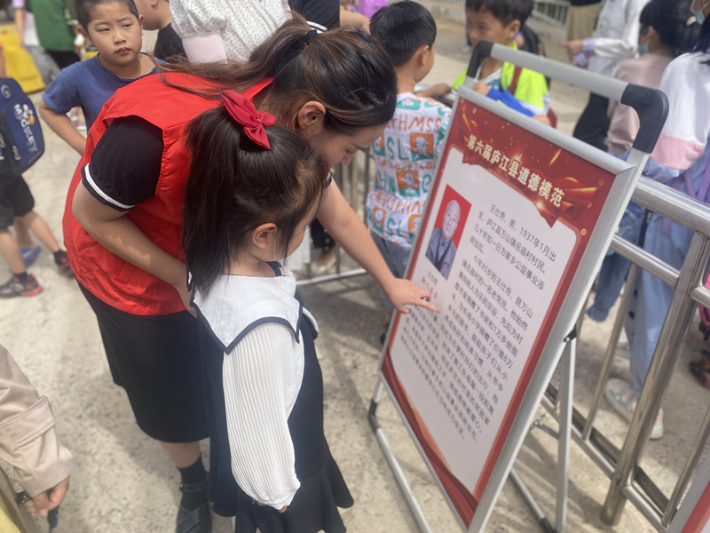 庐江县万山镇新时代文明实践所在辖区明德小学门口组织开展“公民道德宣传日”活动。志愿者们通过悬挂宣传标语、发放宣传品、讲述道德模范和身边好人故事等方式,向师生家长们广泛宣传公民基本道德规范和社会主义核心价值观,引导大家争做有品德、讲道德、传美德的好公民。