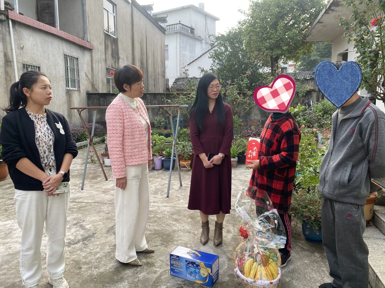 王某某家住屯溪区奕棋镇,一家5口,和丈夫、儿子、2个孙子共同生活。家庭经济来源主要是儿子和丈夫,儿子在饭店当厨师,丈夫退休后每月有1400元退休金。王某某2023年查出患宫颈癌,目前已经过治疗,在家中静养。记者看到,虽然生活艰辛,但王某某仍将家里收拾的井井有条、干净卫生,院子的一边是个小花园,另一边则用泡沫箱种植着蔬菜,病痛的折磨并没有打垮其对生活的热爱。市、区妇联和爱心企业同样为其送上爱心物资。
