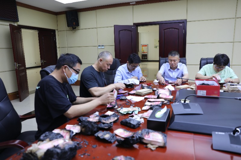 鉴于受损金额巨大,农行涡阳龙山支行网点工作人员第一时间赶到现场并启动应急机制。现场了解得知,杨先生一家多年来经营熟食生意,当天制作熟食过程中大风引发火灾,导致房屋损毁,其存放在家中的200余万元现金被烈火吞噬。现场初步判断,仅残存约90余万元现金也已碳化板结。