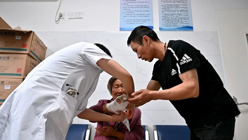 “我被蛇咬了之后,就把伤口放到沟里去洗,后来肿起来了。于是打电话给孩子,叫他快点接我来祁门蛇伤所救治。”受伤群众汪银竹告诉记者。