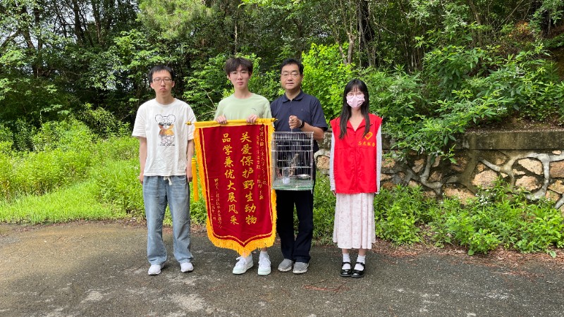 近日,马鞍山市花山区林业发展中心将一面写有“关爱保护野生动物 品学兼优大展风采”的锦旗,送到安徽工业大学学生王欣湉和王鑫的手中,表彰他们在一次雏鸟救助行动中的杰出表现。