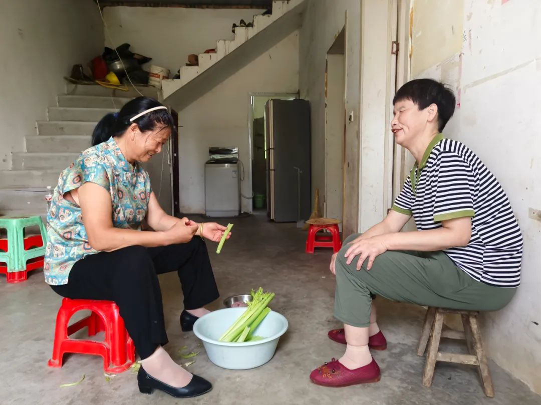 一条百米长的乡间小路,成了连接两家人深厚情谊的纽带。从2017年起,包秀珍便开启了对邝吉菊日复一日的照顾。每天,她都要跑三四趟,只要有一点空闲时间,就会来到邝吉菊家中,帮忙处理屋里屋外的大小事务。