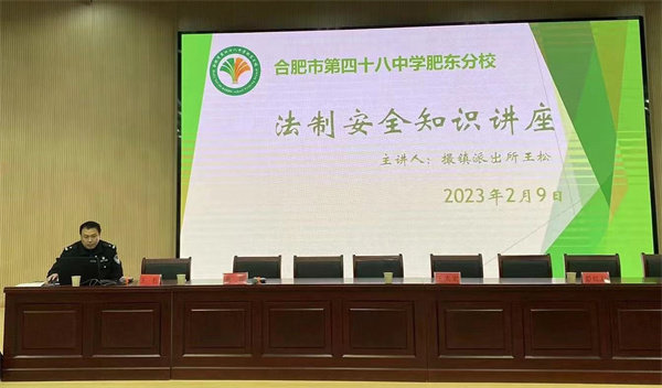 合肥48中肥东分校校长杨威表示,鲜活生动的案例,王警官通俗易懂的解读,赢得了学生们的阵阵掌声。这次讲座让同学们明白了在日常生活中,应该怎样规范自己的言行,怎样预防犯罪,坚决远离毒品,拒绝邪教,做一个学法、知法、守法、用法的合格的中学生。