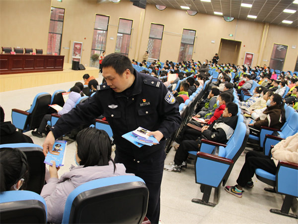 2月9日,细雨霏霏,春寒料峭,合肥48中肥东分校多功能报告厅里却春潮涌动。为了增强学生的法律意识、远离毒品的意识,提高他们的自我保护意识,营造文明、平安、和谐的校园育人环境,肥东县撮镇派出所王松警官正在这里给师生们举行一场法制安全知识讲座。