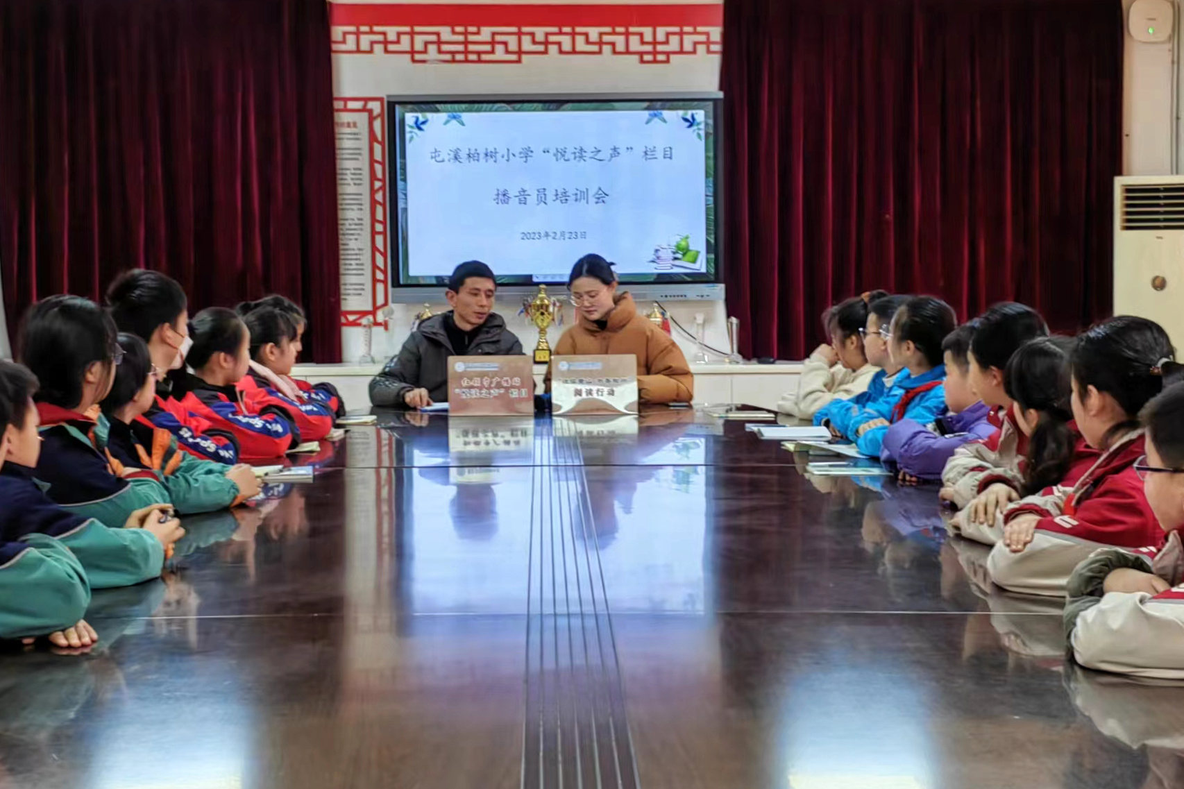 为深入开展“悦读黄山•书香徽州”阅读行动,进一步激发学生读书热情,增强校园文化的人文底蕴,营造翰墨飘香、文明向上的书香校园氛围,经过近一个月的前期准备,柏树小学校园广播站于近日开设了“悦”读之声栏目,并成立栏目组,负责栏目的筹备、开播及日常运行。