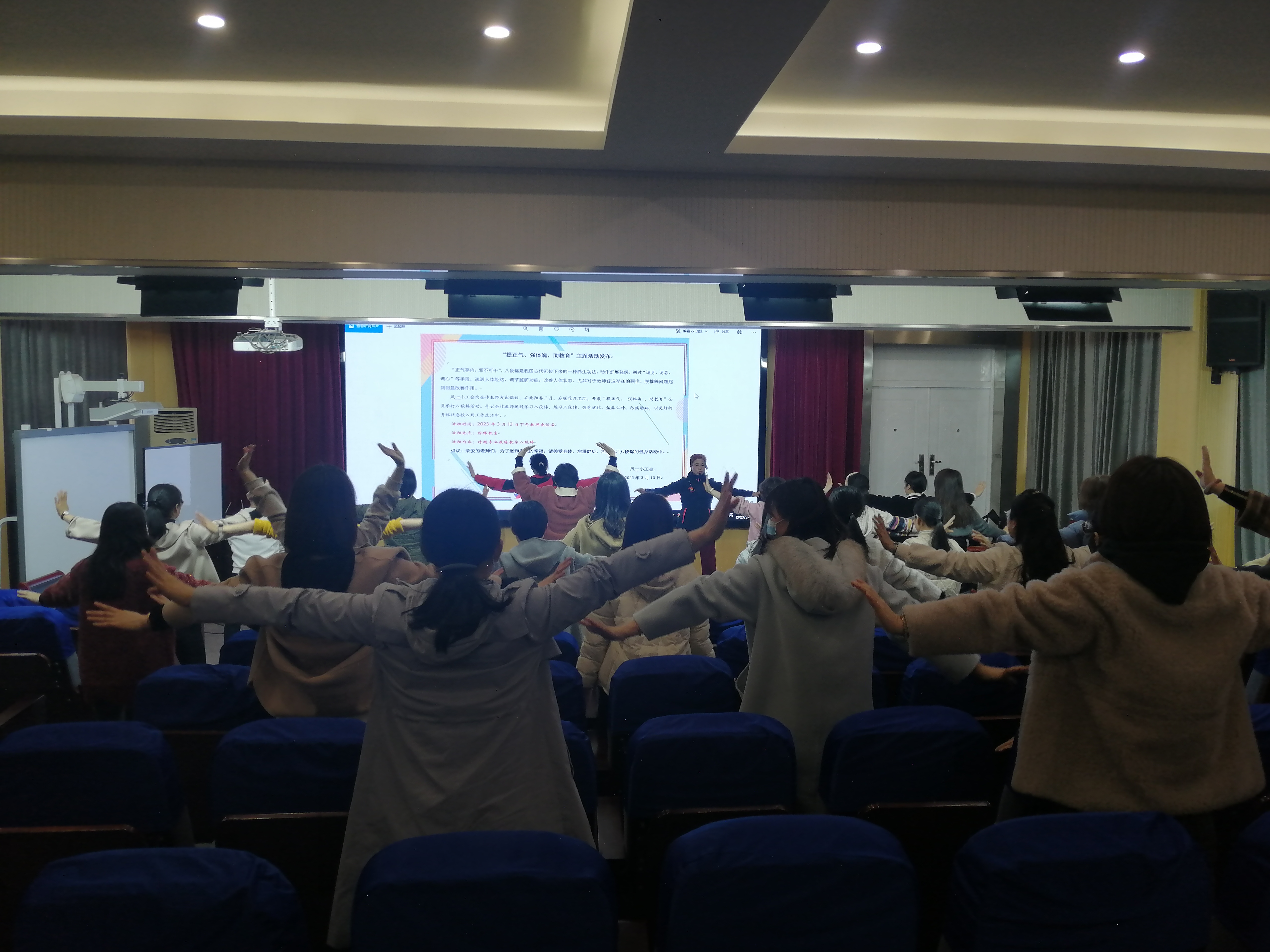 3月13日傍晚,在特邀教练的现场指导下,教师们的健身活动拉开序幕。教学中,两位教练手把手教学,反复示范,耐心讲解,力求让我们的教师能够领悟要领。随着音乐响起,大家学着屈、伸、松、紧,调整呼吸、放松身心。经过认真练习,大家的动作在快慢、刚柔、开合、曲直中一气呵成,动作规范,充满活力,乐在其中。