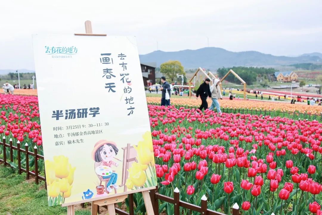 第五届半汤郁金香节花团锦簇,春景祥和。3月25日,半汤郁金香节“百子写生团”来到半汤温泉养生度假区郁金香高地,在漫画名师榆木先生的带领下“去有花的地方”品味自然艺术之美,手绘郁金香高地春日胜景。