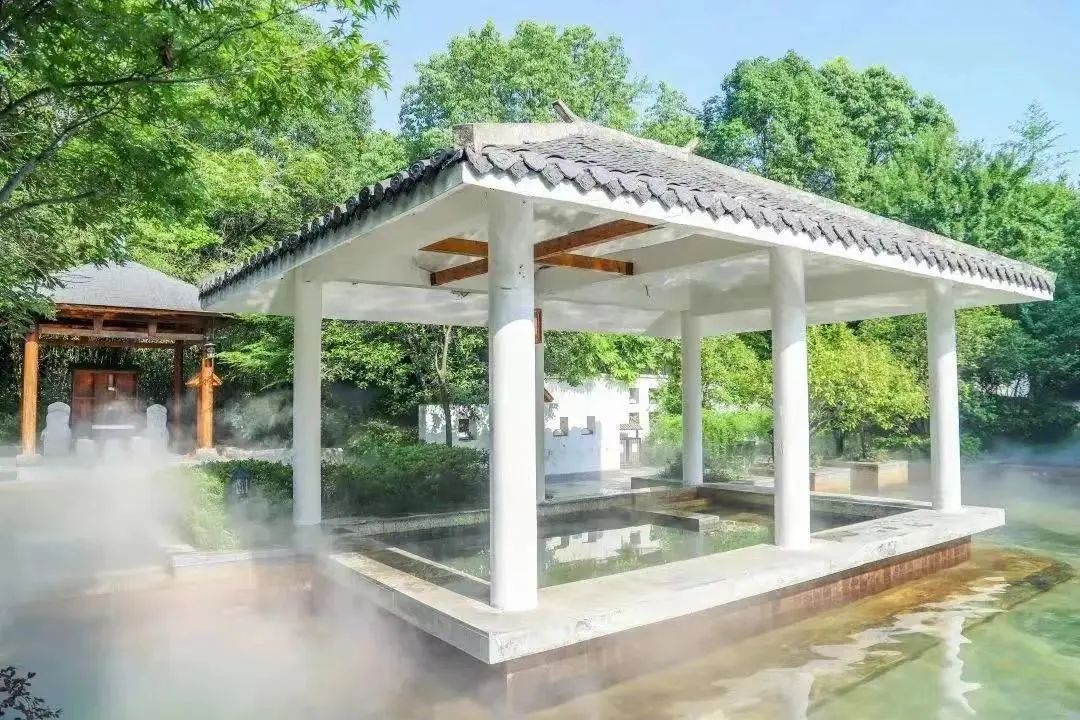 半汤温泉,“冷暖双流偕趣意,潺暖四季奏福音”。一半冷泉,一半暖泉刚好汇聚成“治愈”的温度。