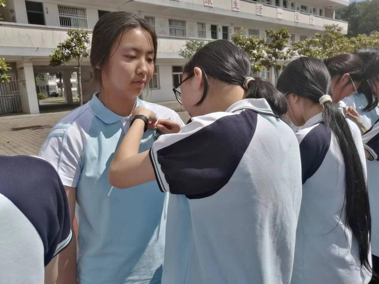 团总支书记余有凤老师宣读了新团员名单,并对他们表示衷心的祝贺。老团员们为新团员颁发、佩戴团徽,这是薪火相传、更是青春力量凝聚的一幕。