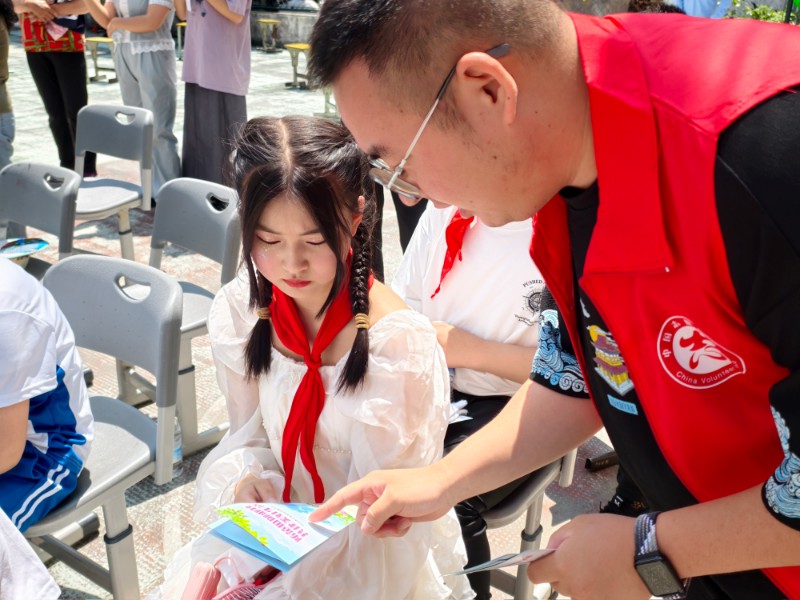 活动现场,工作人员化身“反邪宣传员”,围绕“什么是邪教”“邪教的危害”“如何识别邪教”等内容,用互动问答这种孩子们易于接受的方式进行讲解。针对家长群体,志愿者发放了印有反邪教标语的环保袋、折扇和宣传手册,指导家长从日常生活中引导孩子树立正确价值观。据统计,现场共发放宣传物资80余份,覆盖学生及家长100 余人次。