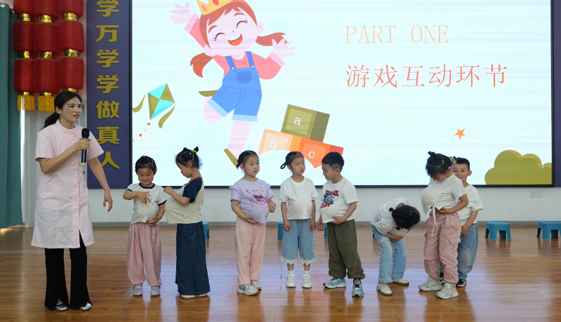 活动在轻松愉快的趣味游戏中拉开序幕。志愿者装扮成孕妈妈,挺着肚子走路、系鞋带,小朋友们也开始学着体验孕妈妈挺着肚子的感觉,现场洋溢着欢声笑语、热情的加油声和热烈的掌声,交织成一片欢乐的海洋。
