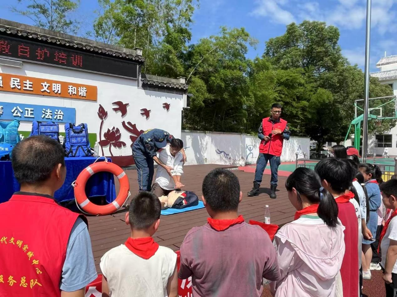 为进一步增强青少年防溺水安全意识,提高学生自救互救能力,6月5日上午,黄山市屯溪区奕棋镇新时代文明实践所、综合文化站联合镇中心小学、九龙幼儿园、蓝天救援队进校开展了一场别开生面的防溺水安全应急演练活动。