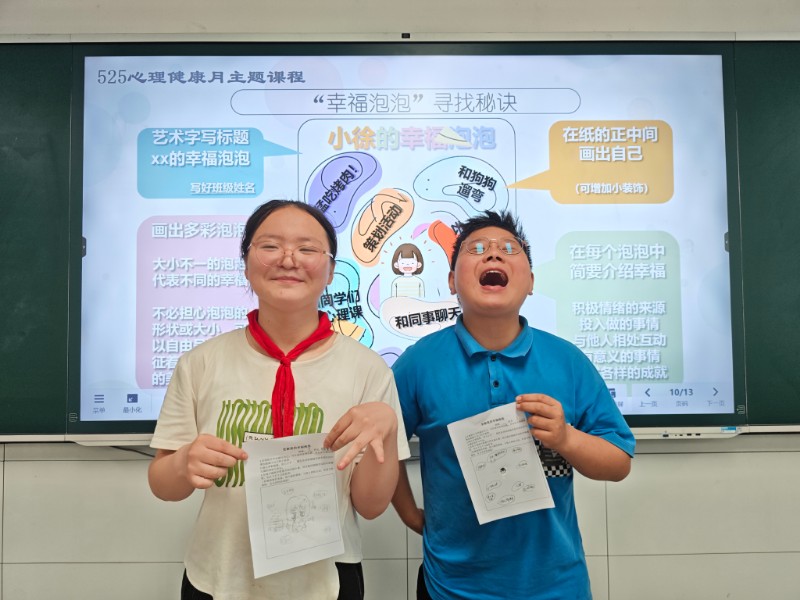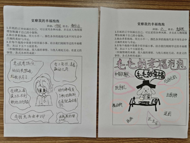高年级“幸福泡泡”活动充满艺术疗愈色彩,通过艺术表达与深度互动,引导学生从细微处感知幸福能量,为青春期的心理成长注入温暖力量。