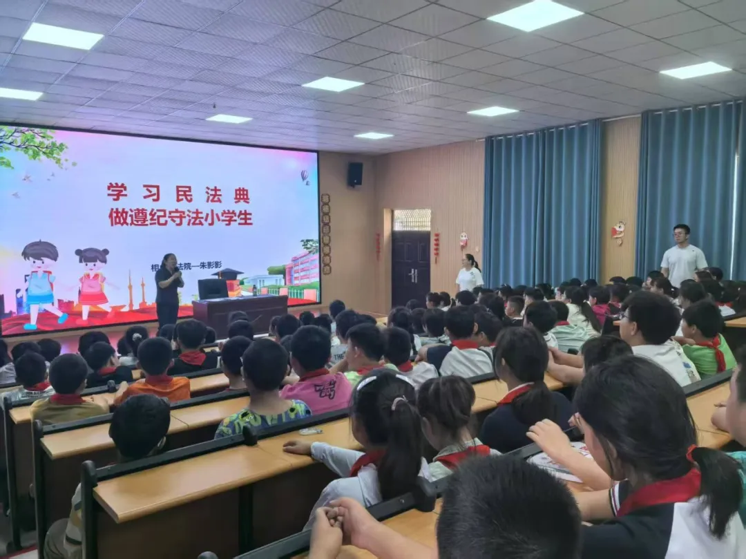 图为6月24日,淮北市相山区法院家事审判庭干警走进淮北市第十一中学小学部开展“暑期安全”与“民法典”知识讲座。
