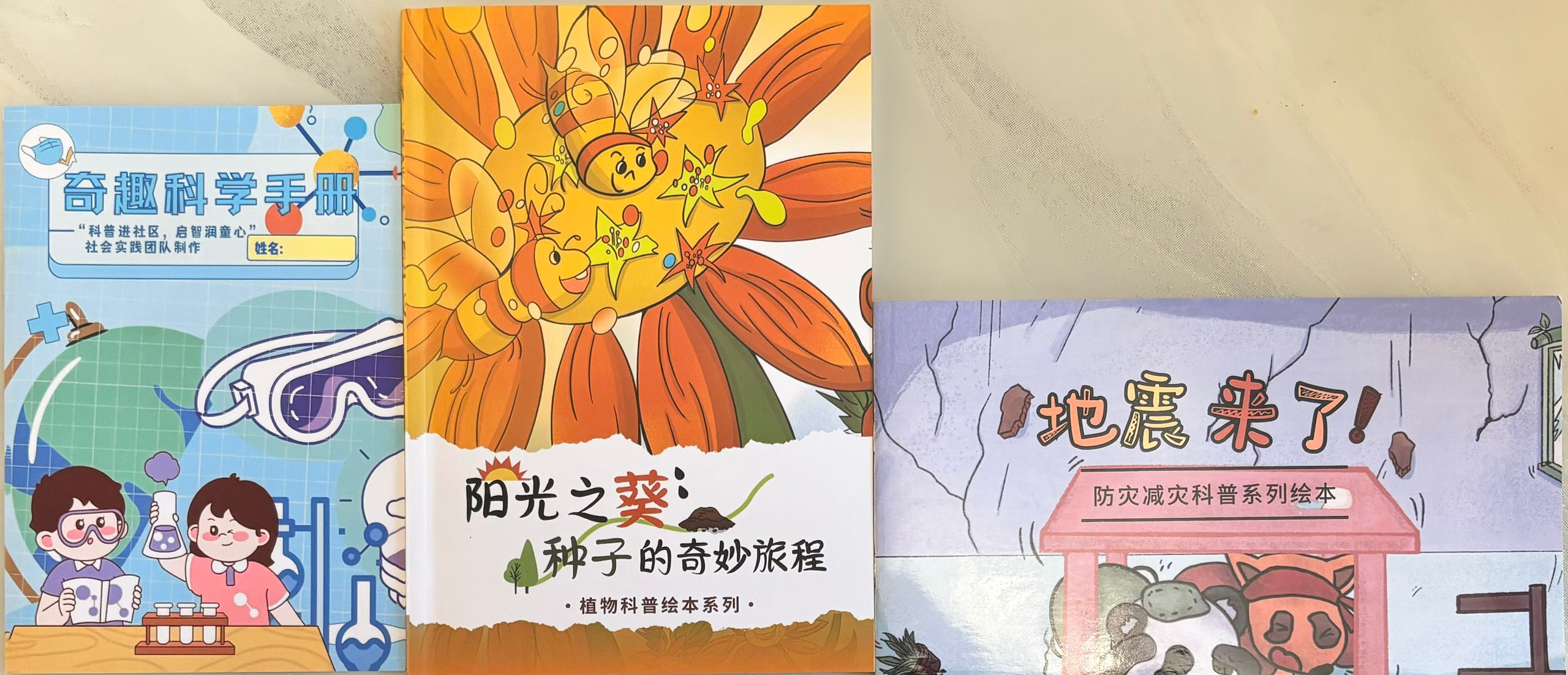 (图为实践团队为孩子们提供的科普手册及绘本。檀佩雅供图)
