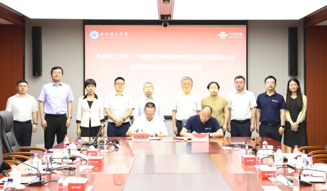 7月18日上午,合肥理工学院与中国联合网络通信有限公司安徽省分公司(以下简称“安徽联通”)在安徽联通大楼签署战略合作协议。合肥理工学院党委副书记、院长吴玉程,合肥理工学院党委副书记、副院长李先强,安徽联通党委书记、总经理韩冰,安徽联通合肥市分公司党委书记、总经理蒋海松出席签约活动。