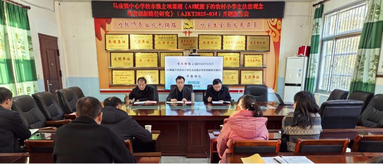 11月20日下午,怀宁县马庙镇中心学校举行市级课题《AI赋能下的农村小学生法治观念培育创新路径研究》(AJKT2025-034)开题报告会。