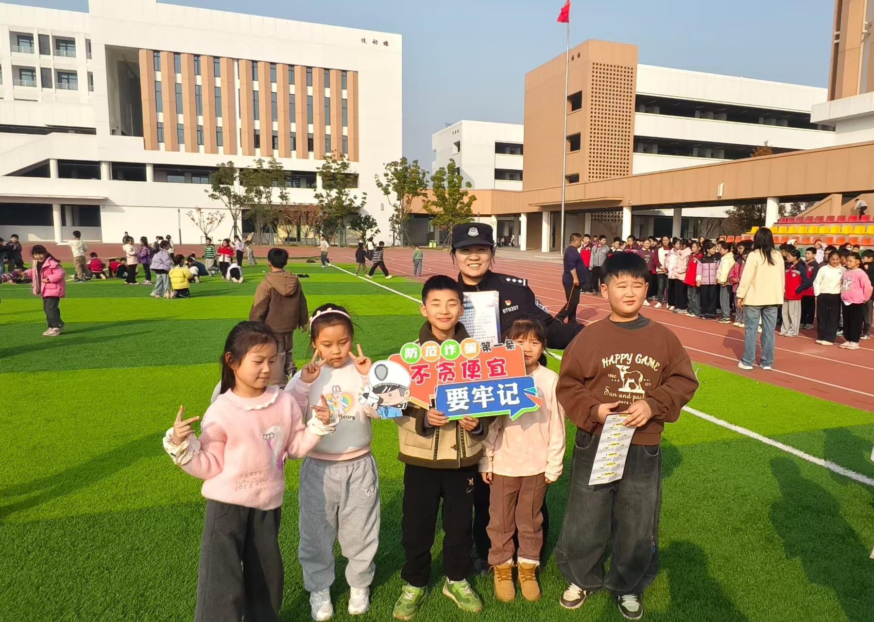 活动现场,交警结合小学生的认知特点,用通俗易懂的语言讲解交通安全知识,并通过互动问答、模拟交通场景等形式,引导同学们主动思考、积极回应,在轻松愉悦的氛围中牢记交通规则,养成文明出行的良好习惯。随后,派出所民警结合近期高发的安全风险,开展了反电诈、防溺水、防霸凌等安全宣传。反电诈宣传中,民警针对小学生及家长易遭遇的“游戏充值诈骗”“刷单返利诈骗”等类型,用真实案例拆解诈骗套路。防溺水宣传环节,民警通过“六不准”口诀,提升同学们的防溺水警惕性。在防霸凌宣传中,民警教育同学们要学会保护自己,不参与霸凌行为,遇到问题及时向老师和家长求助,共同营造和谐友爱的校园环境。